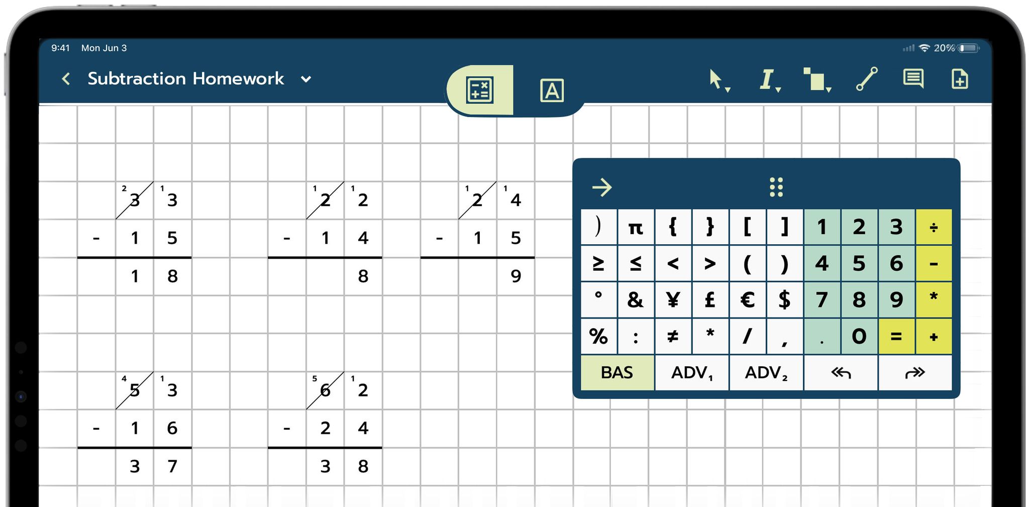 • Digital graph paper that helps students keep numbers and operations aligned.